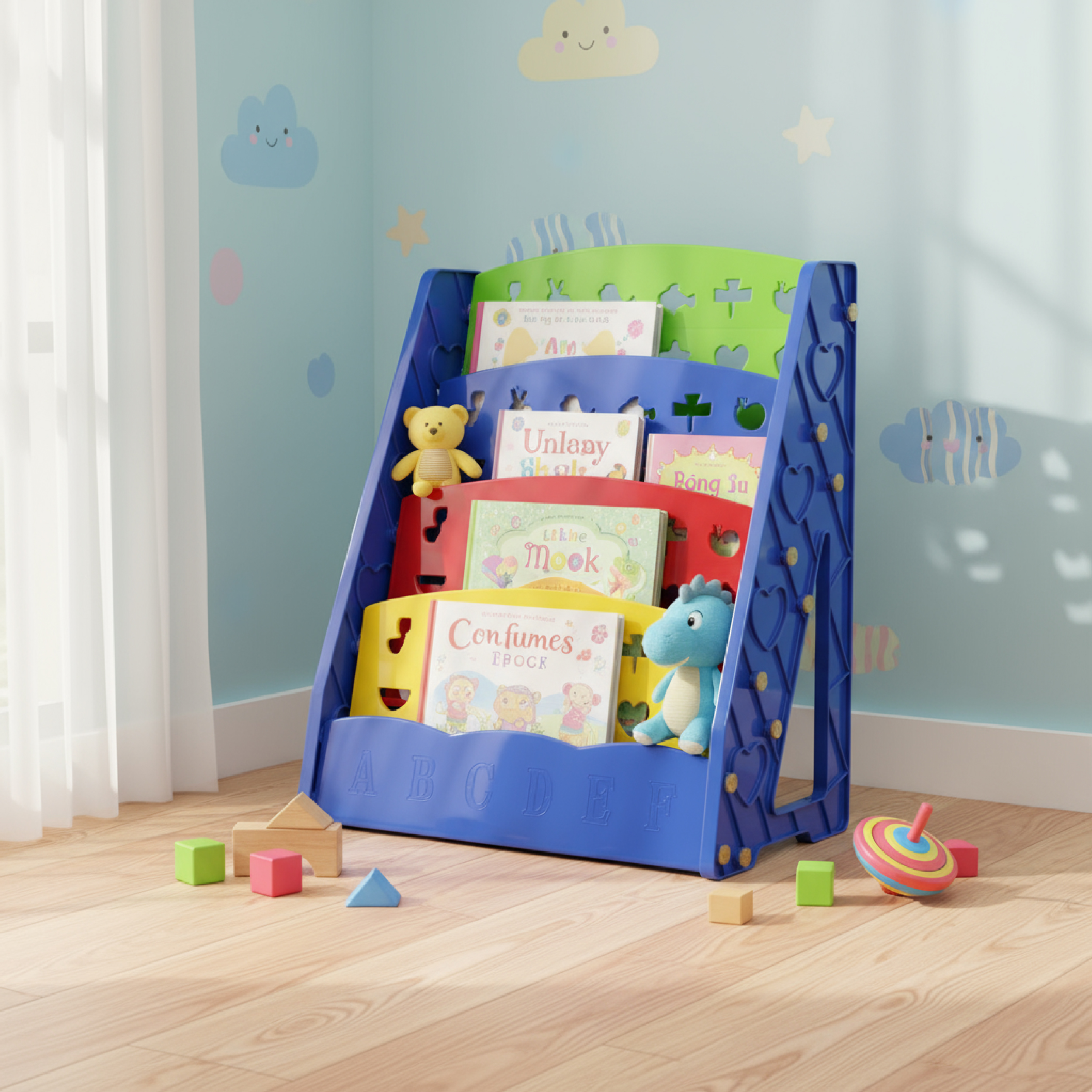 Rafte plastike për libra me 5 nivele për fëmijë janë partneri i përkryer për të organizuar botën e leximit dhe mësimit të fëmijëve tuaj. Ky dizajn i veçantë sjell organizim dhe argëtim në ambientet e fëmijëve, duke ndihmuar me organizimin e librave të tyre të preferuar në një mënyrë të sjellshme dhe të këndshme.